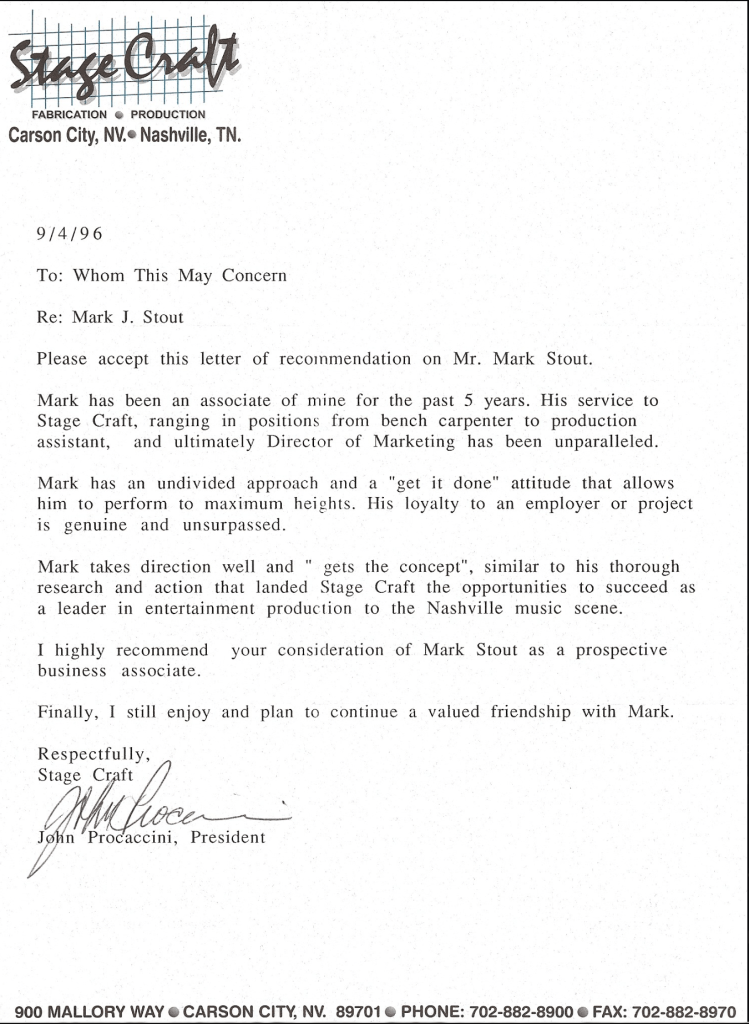 In the 1990’s Mark became marketing director for StageCraft, a west coast-based set design and fabrication company which built touring sets for rock and roll bands such as KISS, Aerosmith, and Pink Floyd. In 1995 his employer sent Mark to Nashville, Tennessee to open an east coast facility to service the touring Country Music artists based in Music City.